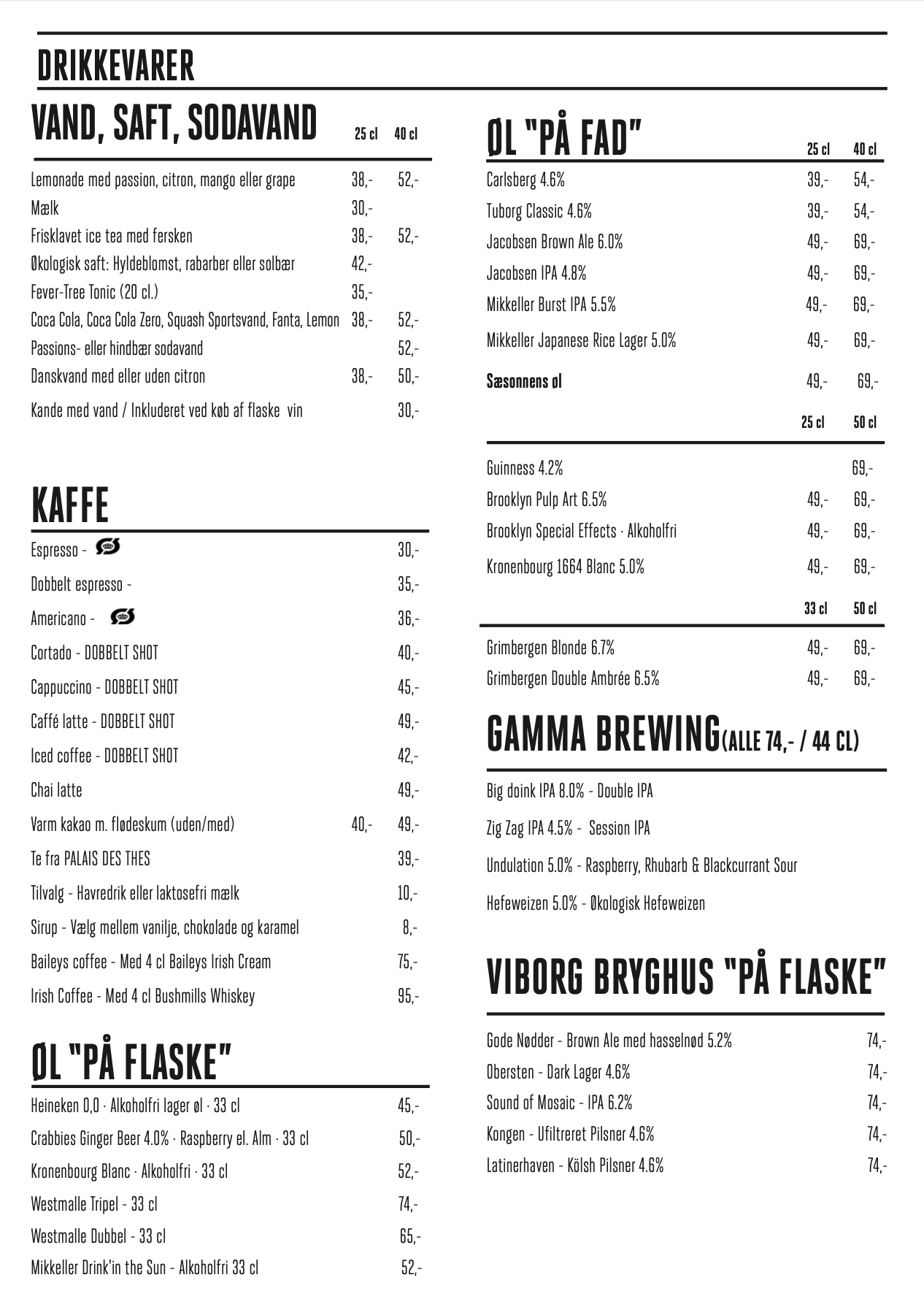 Ud over vores frokost menu byder vi på en indbydende aften menu med retter tilberedt af friske råvarer. Søndagsbrunch er også en oplagt mulighed for at nyde en afslappet formiddag med forskellige anretninger og en god start på dagen.